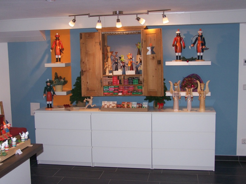 Im Dezember 2012 eröffneten wir unseren Verkauf in Seiffen. Er befindet sich 150 m unterhalb des Spielzeugmuseums. Hier verkaufen wir ausschließlich Ware aus eigener Herstellung.